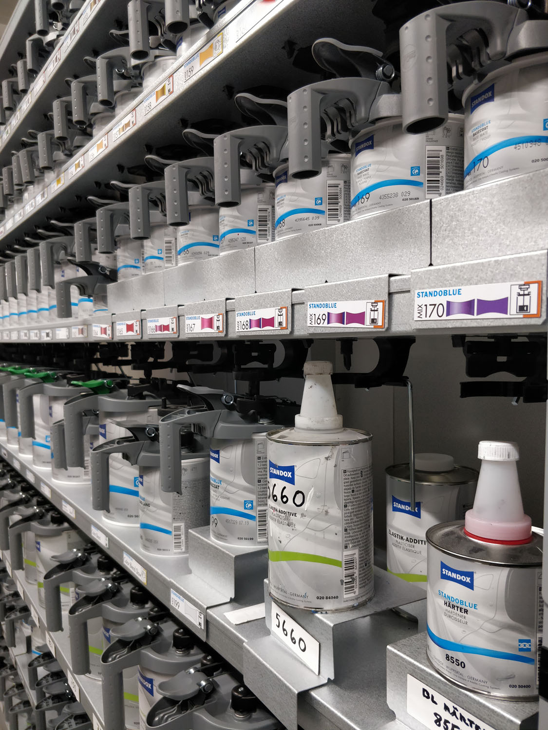 Käytössämme on sekä vesiohenteiset, että akryylipohjaiset Lechler- ja Standox-maalit